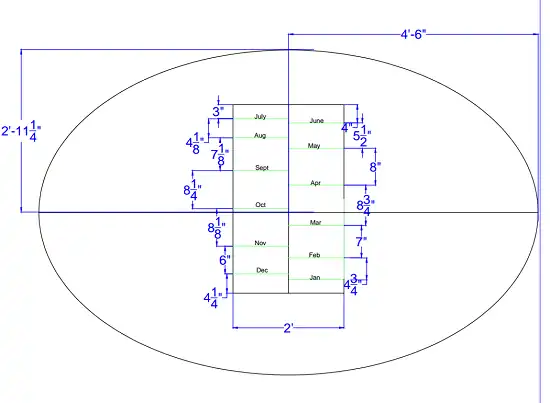 | 3 | The place where a person stands (the scale of dates) is based on the Analemma, which is the path of the sun in the sky over the year. To find the distance for where to stand for each month using the equation: