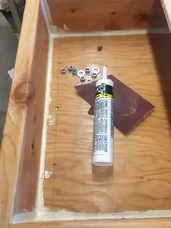 | Step 4 To keep the wood frame from having water damage issues, caulking was used on the seams and a sealant was used on the wood surfaces. We used a salad bowl finishing stain to seal the wood. | |