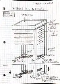 The Delphi Method was used to choose a design from the many alternative solutions created. The Delphi Method is where each one of the alternative designs is given scores in categories corresponding to each criterion. The Delphi Method uses a matrix with this data to give each design a respective score. The design with the greatest raking would be chosen as the final design. The solution with the greatest ranking was "Wedge and a Ledge" design (right). This design meets the project criteria most appropriately. It is appealing, affordable, made of durable materials, uses materials with low impact to the environment, portable, is one of the safer alternatives, and is reinforced with three crossbars which provide it with support.