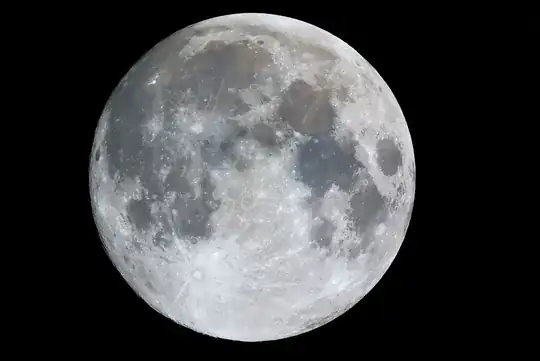 Left: Thomas Harriott's lunar map, undated but probably drawn c. 1610-1613, based on early telescopic observations, quoted from Chapman, A. "A new perceived reality: Thomas Harriot's Moon maps", Astronomy & Geophysics 50(1), 2009; Right: same photograph of the full moon as above, scaled down to 60 pixels across and back up to 320 px.