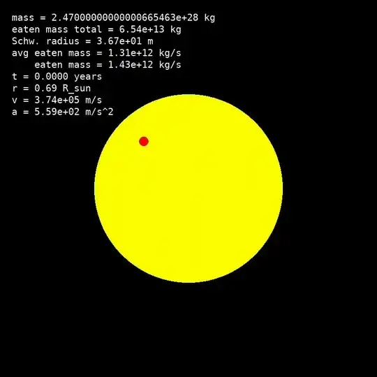 But you may have noticed that our $13M_{Jupiter}$ BH is already above 1% of Sun's mass (which Anders proposed as the point where we're getting close to explosion). So even for this already explosive BH that doesn't need to grow, if it was growing through movement, that would still be extremely slow. If we instead used a Jupyter mass BH, it would need to feed for about 150 mln years before it gets explosive.