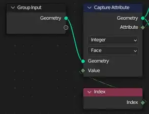 - "Corners of Face" needs to evaluate "Face Index" field, so again go backwards to Group Input…