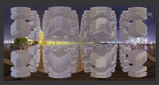 Your viewer, looking straight ahead, will see the CENTER of this image. If they turn 180º and face behind themselves, they'll see what's in the leftmost pixels of this image (identified with the right-most; remember you're in a sphere!). If they look straight up, they'll see (extremely low-res!) views of the topmost rows of pixels, and if they look down, the bottommost.