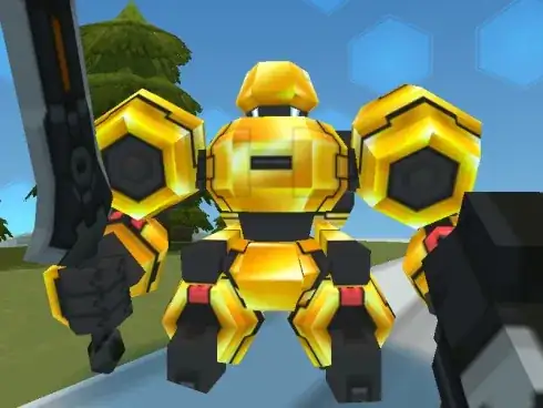 I am trying to model a Mech in a very simplistic style with pixelated textures. I am trying to achieve something similar to this: