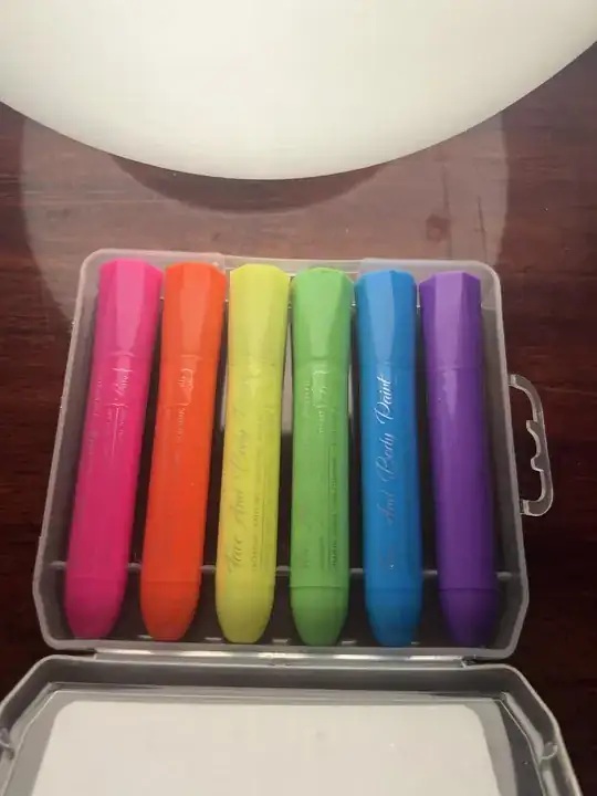 Markers lit by 650nm +/- 10 red laser light. The blue marker looks like it might be slightly blue to my eye, but it's hard to say.