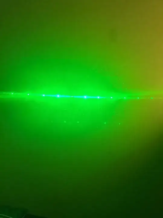 The green laser shined at the wall through the diffraction grating: