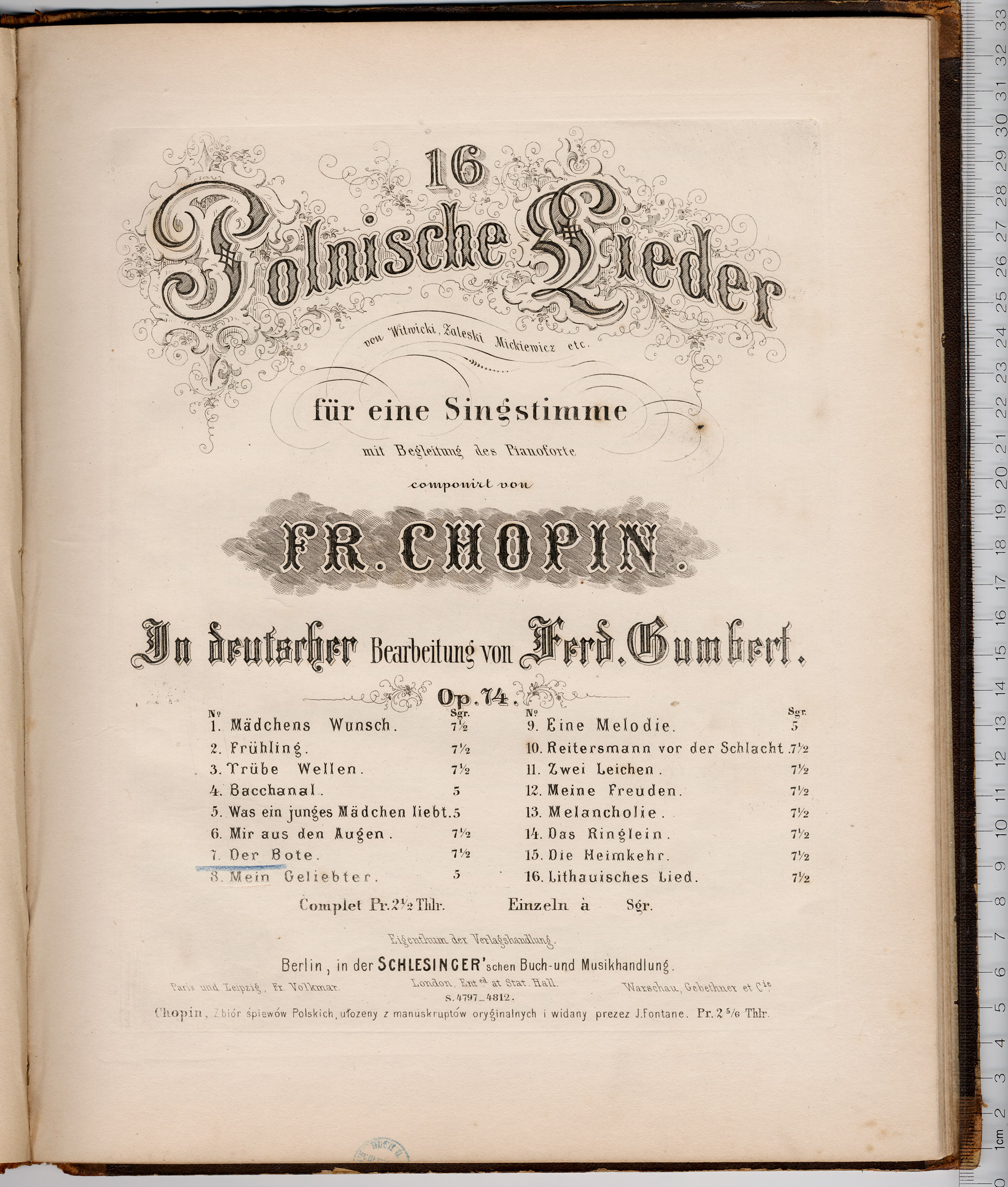 Polnische Lieder : von Witwicki, Zaleski, Mickiewicz etc. : für eine Singstimme mit Begleitung des Pianoforte : Op. 74