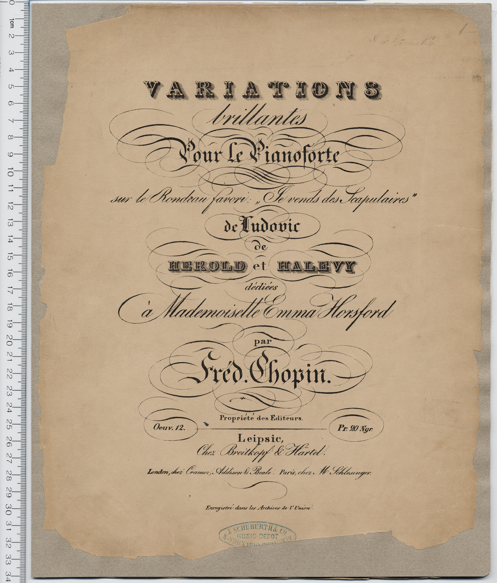 Variations brillantes pour le pianoforte sur le rondeau favori "Je vends des scapulaires" de Ludovic de Herold et Halevy, oeuv. 12