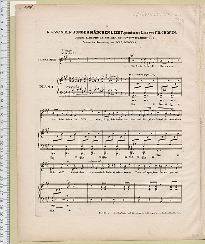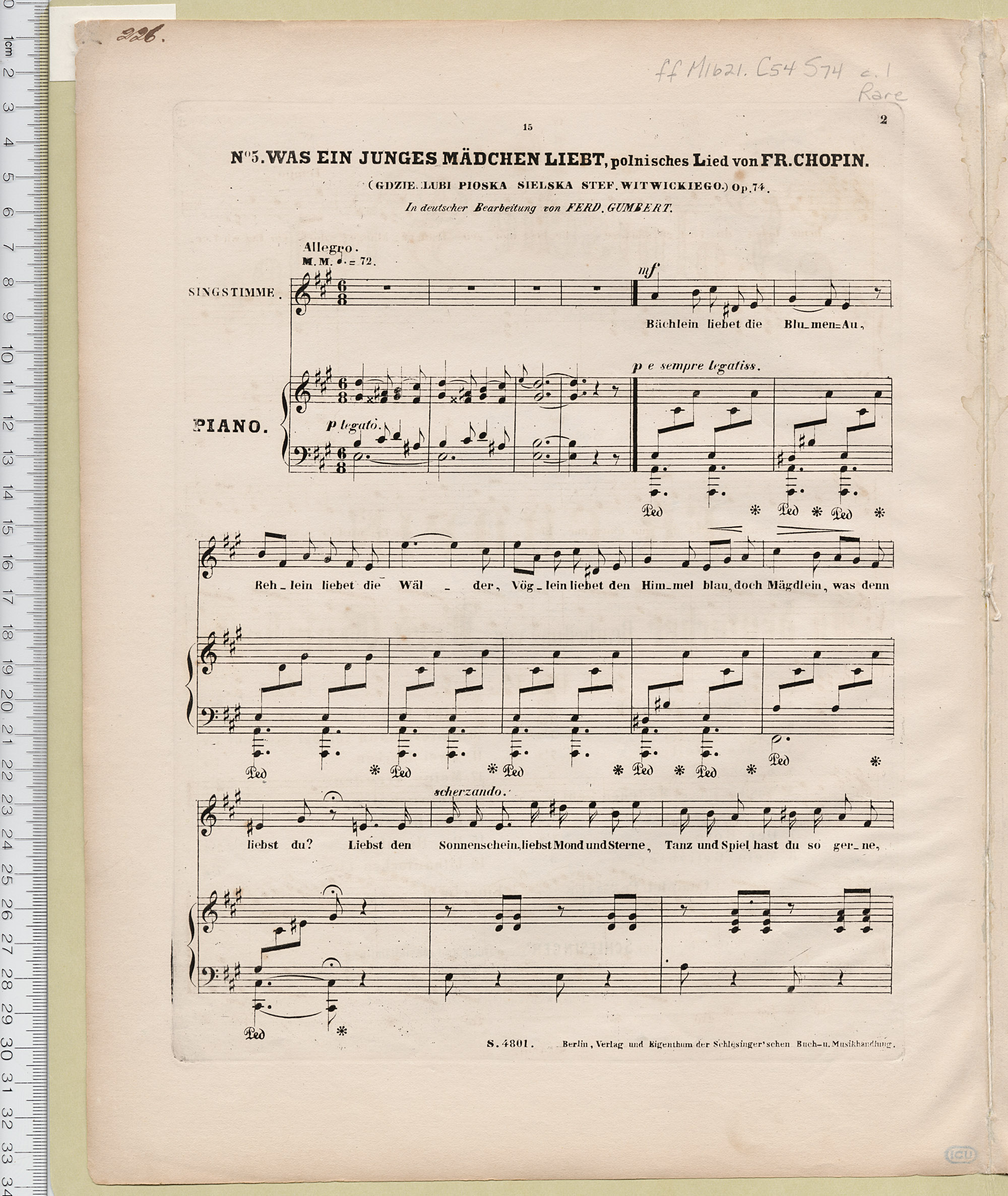 16 Polnische Lieder : von Witwicki, Zaleski, Mickiewicz, etc. : für eine Singstimme mit Begleitung des Pianoforte : Op. 74. No. 5, Was ein junges Mädchen liebt