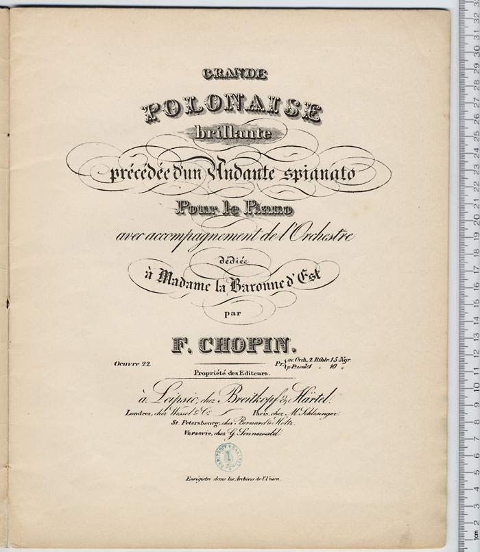 Grande polonaise brillante précédée d'un Andante spianato : pour le piano avec accompagnement de l'orchestre : oeuvre 22