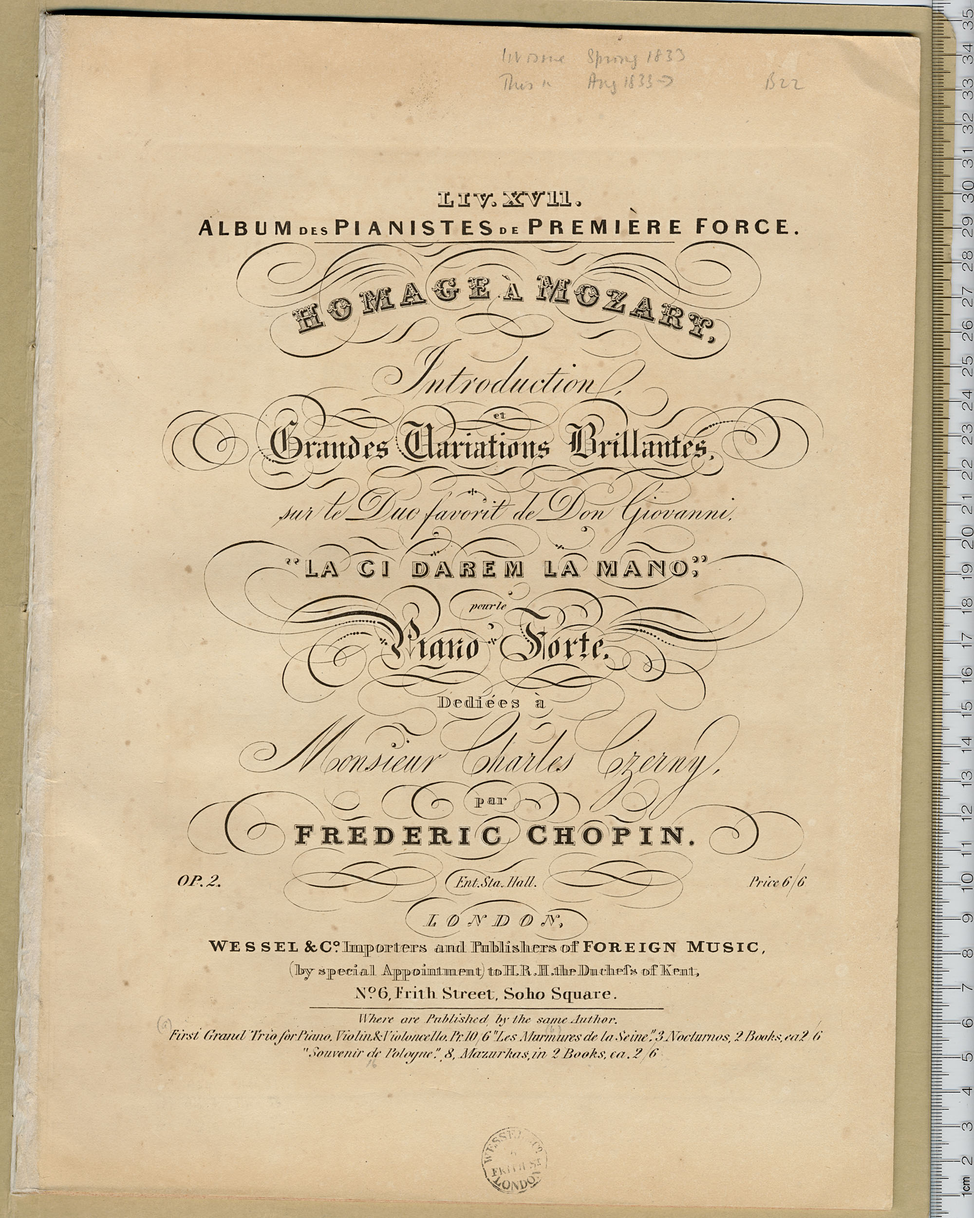 Homage à Mozart : introduction et grandes variations brillantes sur le duo favorit de Don Giovanni, "La ci darem la mano" : pour le piano forte, op. 2