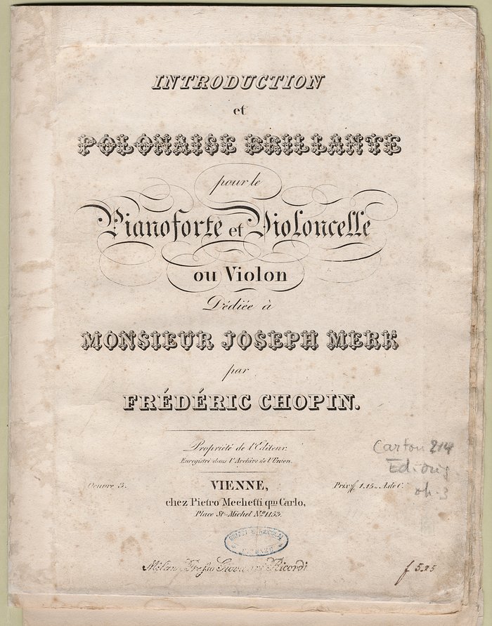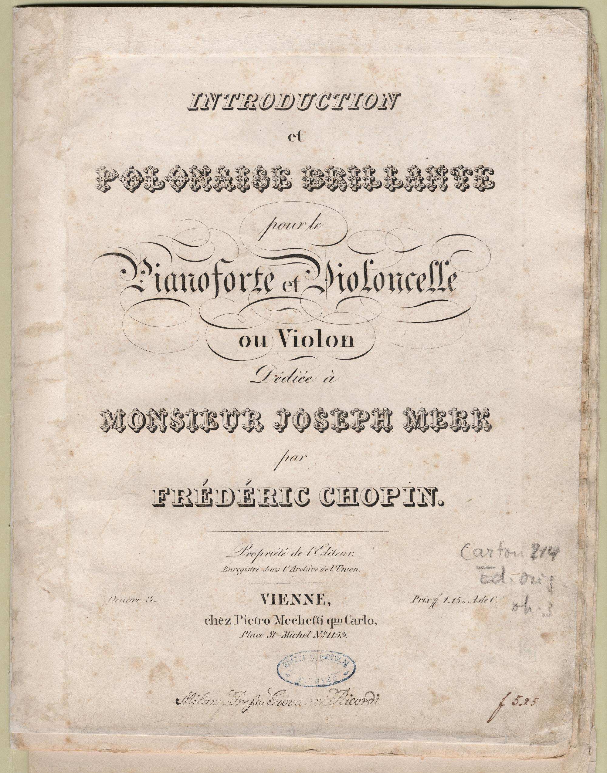 Introduction et polonaise brillante : pour le pianoforte et violoncelle ou violon, oeuvre 3