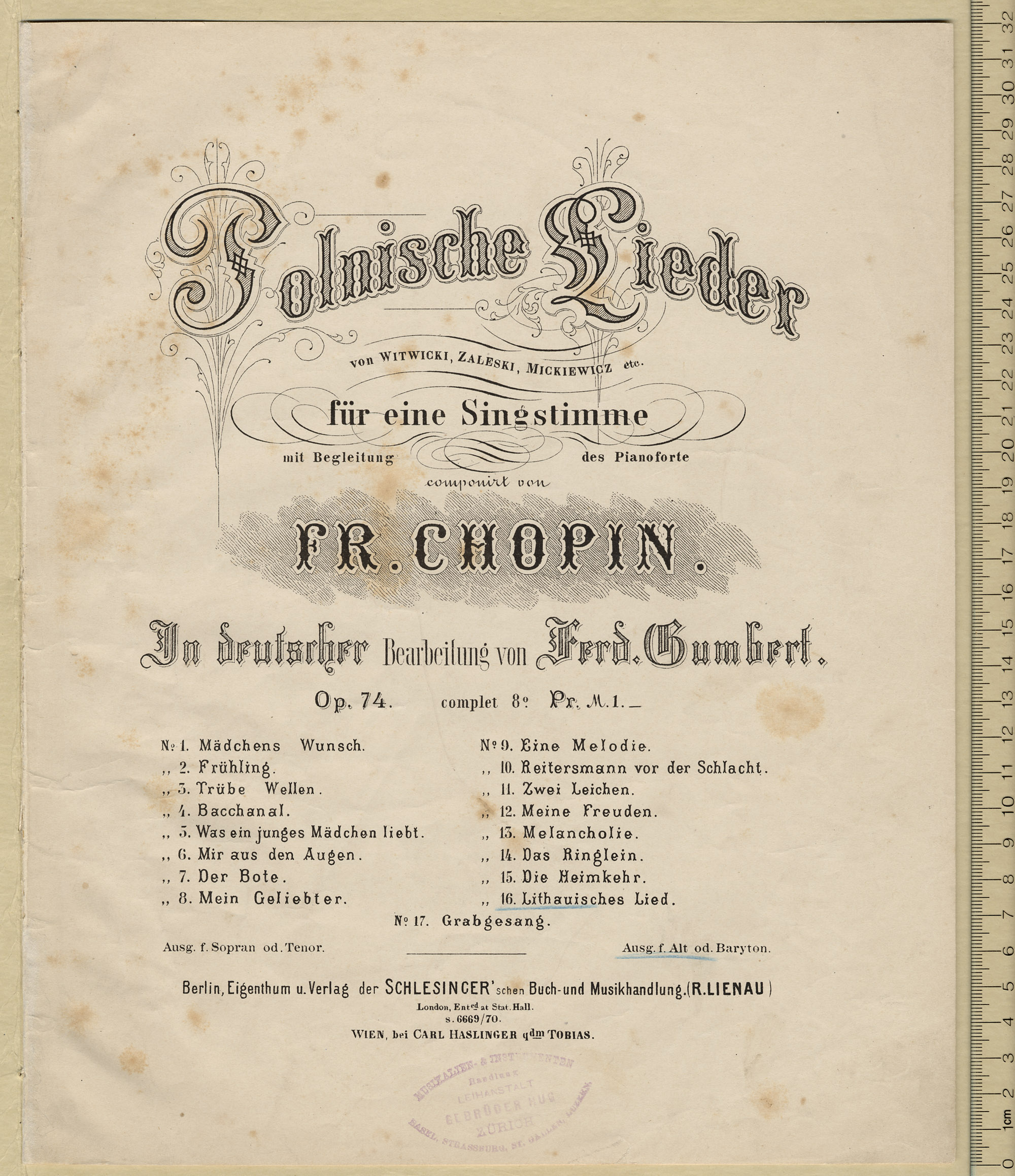 Polnische Lieder : von Witwicki, Zaleski, Mickiewicz, etc. : für eine Singstimme mit Begleitung des Pianoforte : Op. 74. No. 16, Lithauisches Lied