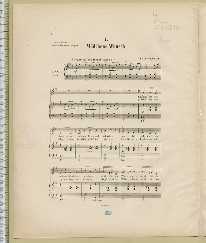 Polnische Lieder : von Witwicki, Zaleski, Mickiewicz, etc. : für eine Singstimme mit Begleitung des Pianoforte : Op. 74. No. 1, Mädchens Wunsch