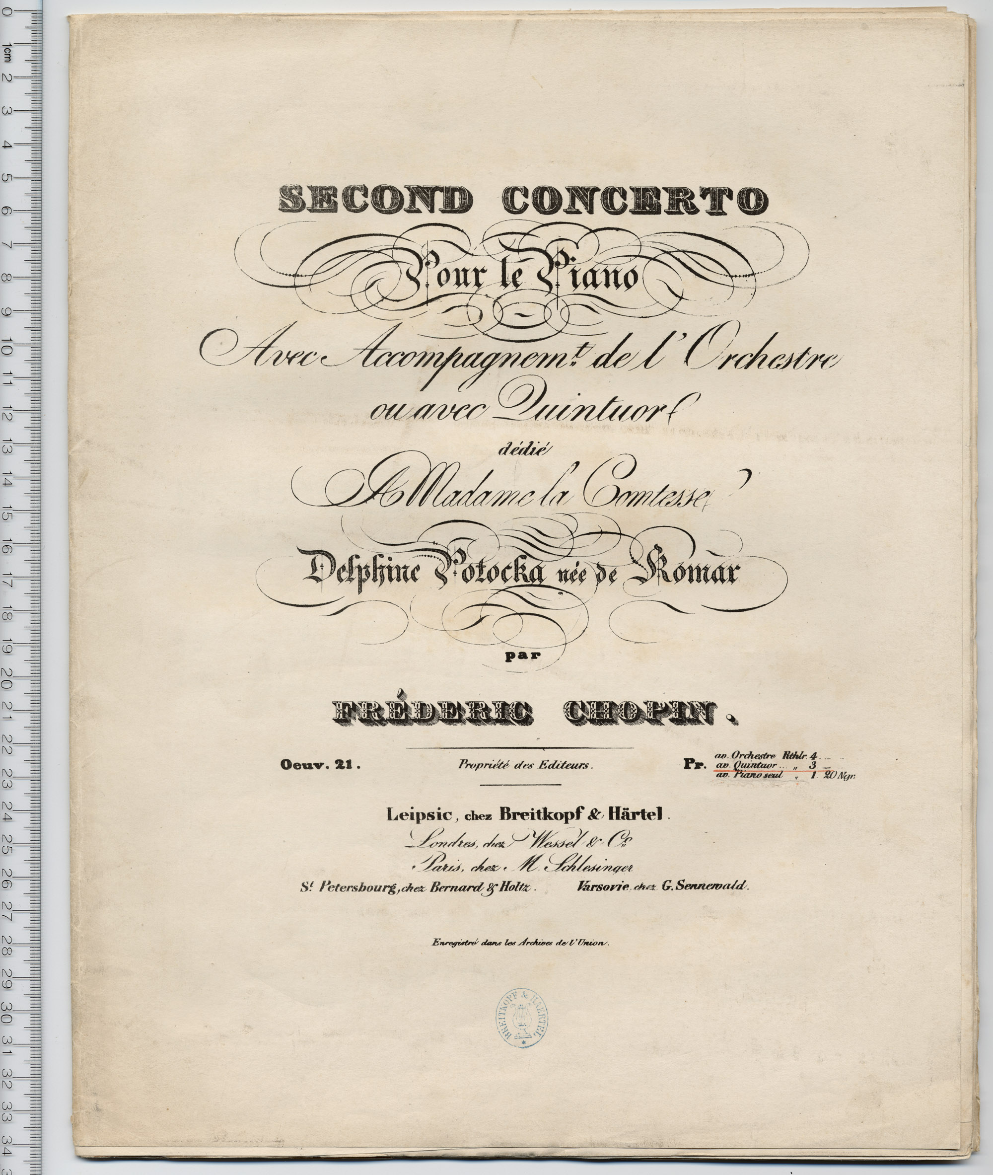 Second concerto pour le piano, avec accompagnemt. de l'orchestre ou avec quintuor, oeuv. 21
