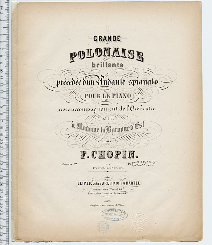 Grande polonaise brillante, précédée d'un andante spianato : pour le piano : avec accompagnement de l'orchestre, oeuvre 22
