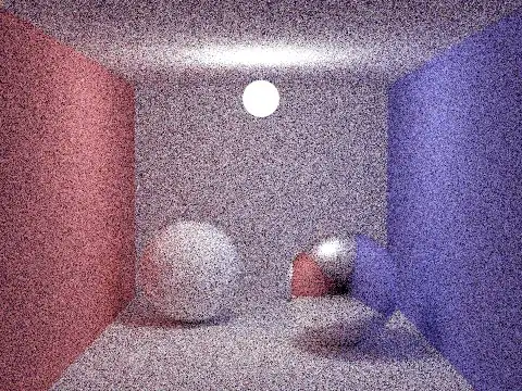 In my radiance function I am recursing through the intersected objects with the next intersection from the ray that's being traced. I'm using russian roulette with a depth of 5 to avoid infinite recursion. After this I find a point of intersection Vec y and calculate the normal there. After this I sample the brdf, which in this case is specular, to get the incoming direction vector, stored in i. Finally I call the function using a new ray with the point of intersection and -i.