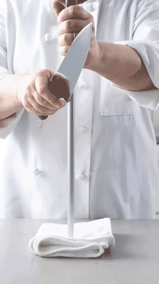 Another type of soul that is inherently unsafe is the one caught up in the fact that this is one of the kitchen techniques that "Looks cool. AF. LCAF." The wilder their actions can be, I mean the showier their actions can be, and still have the scrape of steel, the better. For them. They aren't going to do a lot of honing anyway because they don't ever really consider which way they are driving the "serrations" that make up the real edge of a blade. It's all about the show. And recall bias (recall of both chance success, as well as actually false memories) to convince them they are doing it right. Bad knives mess it up for everyone! This blade sucks!