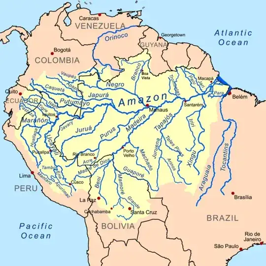 The Amazon has an enormous drainage basin: