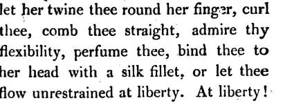 Most of the limbs of law do everything in a jiffy; but ask what they mean, and they would be as much puzzled, [...] if such gibberish were confined to hackney clerks of twelve shillings a week, we should not notice it (...) but the misfortune is, by degrees it has found its way into more polite assemblies, and a lady of taste was heard to say the other evening at the Pantheon, that she could turn Sir William B_____ round her finger in a jiffy.
