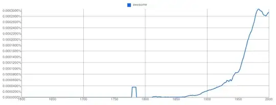 Recently I noticed a strong increase in the usage of the word "awesome" between around 1760 to 1790. Then this word became again absolutely uncommon for a while. See the usage graph below.