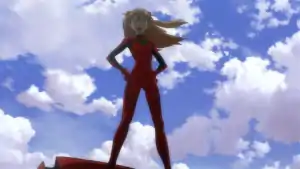 - The flaming orange hair and many other elements in the sequence are a direct reference to Nono from Gainax's Diebuster, itself a sequel to Hideaki Anno's famed Gunbuster.