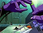 Upon their arrival, Shinji and Misato meet with Ritsuko Akagi, who leads them further down. The recovered Angel begins to resume its journey towards Tokyo-3. Shinji is brought to the Evangelion hangar, where he is shown Eva-01 and where Gendo also appears above. Shinji then learns that he has been summoned to pilot Evangelion Unit-01 into battle against the Angel.