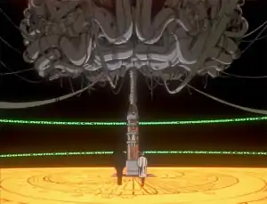 An orbital view of Post-Second Impact America is seen, with a small red dot spreading across the continent. Absolute panic ensues in the bridge, since Nerv's Second Branch in Nevada has completely vanished. Misato, Ritsuko, and the bridge trio review the incident, and notice that the disappearance took place at the same time that the restored S² Engine sample was to be installed on Evangelion Unit-04. A ridiculous 32,768 possibilities for the accident abound, including sabotage. Ritsuko suspects that the branch was swallowed into a Dirac Sea like Eva-01 had previously, and when Misato criticizes the idea of using things they don't fully understand, Ritsuko thinks to herself, "Just like the Evas." Later, on the escalator, Ritsuko informs Misato that the U.S. Government is sending over Evangelion Unit-03 to them from the United States, to prevent the First Branch from being lost as well.