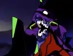 Grabbing Zeruel's arm, Eva-01 yanks the Angel towards it. The unit breaths heavily for several moments before giving Zeruel a mighty kick strong enough to rip Zeruel's left arm from its body. Unit-01 uses the arm to regenerate her own, before launching her own attack on the Angel. After laying it out on the ground with an immensely powerful A.T. Field attack, Unit-01 devours the crippled Angel in order to ingest its S² Engine. The Evangelion then snaps off its bindings, roaring at the sky. A worried Ritsuko explains the implications of this, telling Misato that it means they are no longer able to stop the Eva.