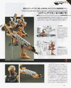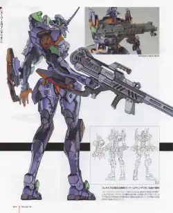 Neon Genesis Evangelion: ANIMA is a light novel currently being serialized in Dengeki Hobby Magazine. Initial announcement was presented in the November 2007 issue, with a short introduction by and interview with Ikuto Yamashita in December 2007. First chapter was published in the January 2008 issue. The chapters are accompanied by numerous illustrations of the characters and many redesigned and upgraded Evas. Anima is advertised as "Ikuto Yamashita presents," and he is credited as the supervisor of the entire work, mecha designer, and illustrator. Character design and character illustrations are done by Hiroyuki Utatane, with coloring by Ryou Ramiya. Also features additional mechanical designs by Seiji Kio and in a few issues models built by some of the Dengeki Hobby modelers as well as Bandai prototypes. The Chōgōkin Super Evangelion toy was finally released in March 2010 after more than 2 years of development by Bandai and supervision by Yamashita.