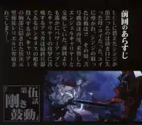 The Spear of Longinus, orbiting around the Earth, had brought the worst consequence to humanity. The Longinus Sphere, generated by the Spear of Longinus, had begun to cause the Earth itself to compress and collapse. The collapse of the tectonic plates caused huge earthquakes to strike the land and many human lives to be lost. Aiming to defeat the pitch-black Eva.Armaros on the Moon surface, which, had thrown in the Spear of Longinus, Nerv Japan sent out Asuka with EVA02 Allegorica. Greeting Asuka on the unsightly rugged terrain on the Moon surface was her sworn enemy Angel Carrier. After a furious battle, Asuka, victorious, recovered her balance and started the search for Armaros. | |