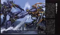 Nine Eva's descended in front of the Euro-Russia combined forces. Strange phenomena were found in Taubert at the center of the Eva's. First it was installed with the heart torn away from Super Eva. Then the female-looking Taubert, which seemed to be nestling close to it, had the face of Asuka on it. The gap of combat strength was too obvious, but with smart fighting by the combo of Hikari and Mari Taubert was severely damaged and it had to withdraw from the battlefield together with Asuka = Taubert. Shinji and his Super Eva came back from the alien world just a bit too late and he started his battle against the Angel Carriers, his sworn enemies. | |