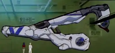 As originally conceived, the weapon utilized the Eva's A.T. Field for propulsion of its projectiles. However, this was changed to electromagnetic propulsion during Eva 2.0's post-production.[4]