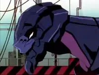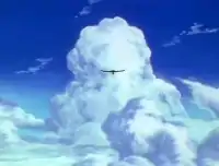 ![]() Suspended in transit. | ![]() The transport aircraft carrying Eva-03 flying into cumulonimbus clouds. | ![]() Infected Eva-03 struggles to break from its restraints. | ![]() Approaching in silhouette. Note the unusually long arms. |