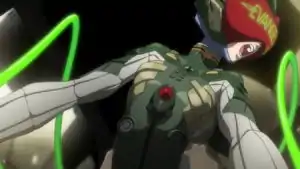 The control scheme for Eva-05 seems to deviate strikingly from traditional Eva piloting: Mari is observed to wear a large helmet-like apparatus, and her plugsuit design is also unusual. The bulky wrist pieces possess attachment sites for three green tubes each, which appear to play a role in the forced synchronization with the Eva's prosthetic limbs. The helmet does not seem to serve a distinct purpose, since the entry plug functions as a normal viewport. It is possible that the helmet is a bulkier version of the Interface Headset.