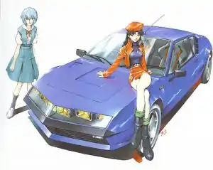 Misato's Car is a Renault Alpine A310, a French-made rear engined sports car that was in production from 1971 to 1985. It's most likely that the model Misato drives is the 1600 VE series in production between 1971 to 1974. It originally came equipped with a 1.6L inline 4 cylinder engine producing about 125 horsepower fed by 2 double barrel carburettors and a manual 5 speed transmission. Another possibility is an A310 from circa 1981, a V6 Series 1 or 2 in production between 1977 to 1985. The A310 V6 Series 1 and Series 2 cars were restyled by Robert Opron and had separate compartments for its left and right front headlamps, larger fender flares and lacked the inlets on the left and right of the front storage compartment, while Misato's car had the older smaller flared fenders, the original headlamp assembly that was continuous and the 2 inlets. However, the production drawings for her car label it as A310 Custom which doesn't designate any kind of body type, but it clearly had the styling of the older body types of the 4 cylinder A310's, regardless of what was under its hood.