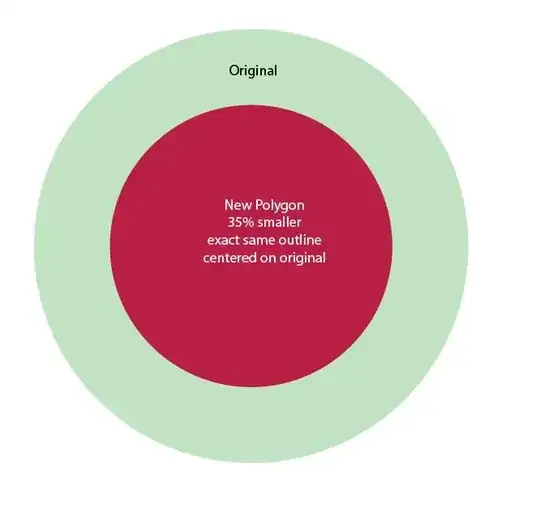 How could I shrink each polygon inward resulting in a 35% reduction of area? I am using the term "reverse buffer" because I want the newly created polygons to have the same shape as the originals and be centered and within the originals, like the schematic below.