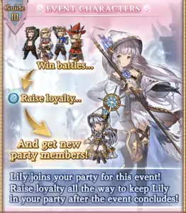 Lily temporarily joins when the event starts and requires 750 loyalty to stay after the event ends.