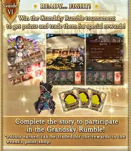 | First Rule of Grandsky Rumble | Battle | ★☆☆ | Defeat Ghandagoza or Al-Khalid a total of 5 times in raid battles | ||