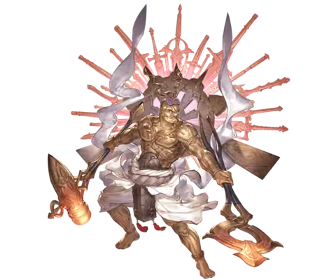 | A primal beast that blesses the creation of weapons for combat. Due to an internal flaw that manifested after the War, it began to rampage in search of powerful weapons, challenging the warriors who wielded them and consuming the weapons for itself. After some time had passed, it was ultimately enshrined on an island as a god of metalcraft in hopes it will be reminded of its true purpose. |