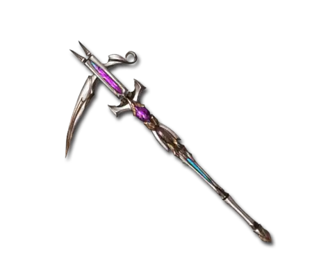 | This scythe, made of undiscovered material, was retrieved from the remains of the machines that came from the moon. Capable of having its center of gravity shifted at will, no one can escape from this bizarre blade's trajectory. |