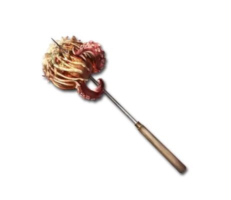 | The giant briny-bite at the tip of the skewer is perpetually heated, allowing it to maintain its searing temperature, hot enough to burn any who dare to go for a taste. Whether the source of that heat is the briny-bite itself or the skewer is a mystery for the ages. |