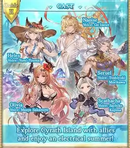 Lyria! Olivia! Hooray! Oh, is this your first time going to the beach, Olivia? Hm? Yes, that's right. Because we're talkin' about this year's vacation, of course! Everyone wears swimsuits, plays on the beach, cooks yummy food, and we all make tons of memories together! I think this vacation can help you become (I don't want to interact with this child This vacation's been a long time comin', so no lookin' glum. Get out there and play to your heart's content! Let's enjoy our vacation together, Olivia! Next time, on Granblue Fantasy: (Getting stubborn and refusing the offer would be unnatural... There's no way around this.) Very well. Let me vacation together with you all. |