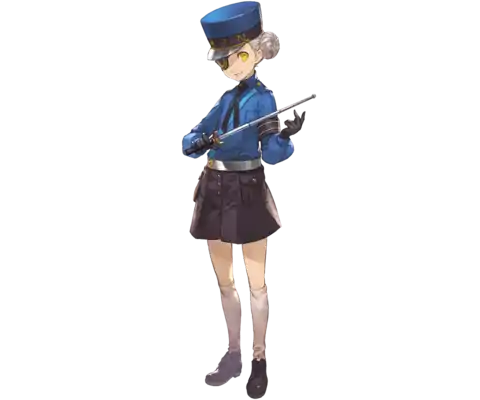 | One half of a twin-sister duo serving as a warden in the Velvet Room. She is always emotional, acting imperious and overbearing to her inmate, Joker. Contrasting greatly with Justine, they sometimes argue over the treatment of the inmate. |