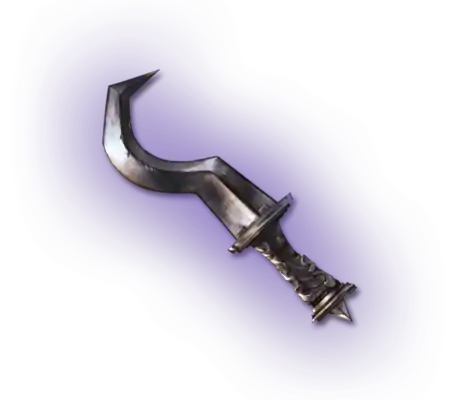 | This implement of dubious purpose shines faintly, its surface dulled with all the blood it has drunk over the years. The cruelly curved blade brings despair thick enough to blot out all loyalty, all rebellion, all desire—all but that for an end to the suffering. |