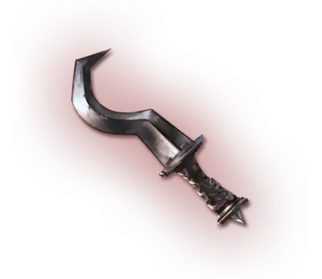 | This implement of dubious purpose shines faintly, its surface dulled with all the blood it has drunk over the years. The cruelly curved blade brings despair thick enough to blot out all loyalty, all rebellion, all desire—all but that for an end to the suffering. |