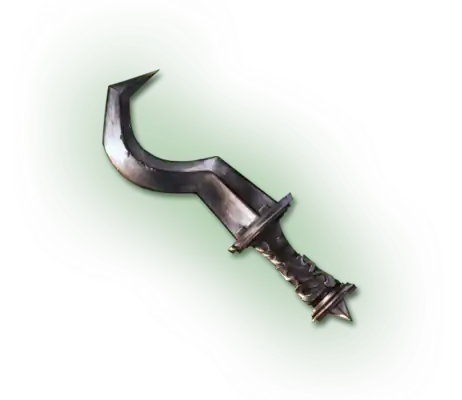 | This implement of dubious purpose shines faintly, its surface dulled with all the blood it has drunk over the years. The cruelly curved blade brings despair thick enough to blot out all loyalty, all rebellion, all desire—all but that for an end to the suffering. |