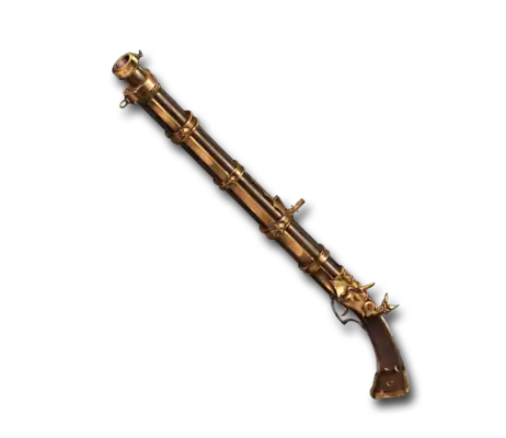 | This is the rifle of an old soldier who drowned his regret in the sea. His legs were made heavy by self-loathing until a fateful visit turned the loathing to resolve. Emboldened, he took up arms against the great evil consuming the dragons. |