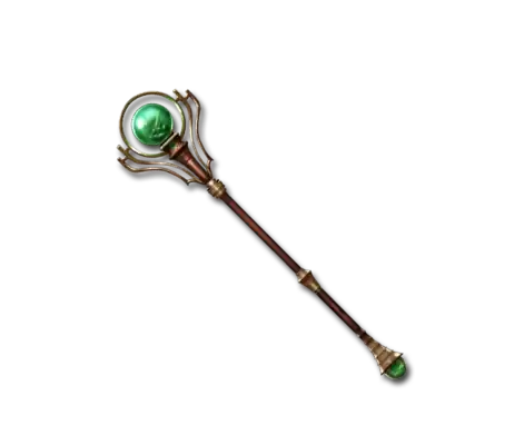 | The ore along the edge of this staff creates gusts of wind that leave all on its path in a mangled heap on the ground. |