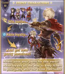 Albert (Event) temporarily joins you at the start. Earn 750 loyalty by winning quests and raids with him in the party to keep him after the event ends.